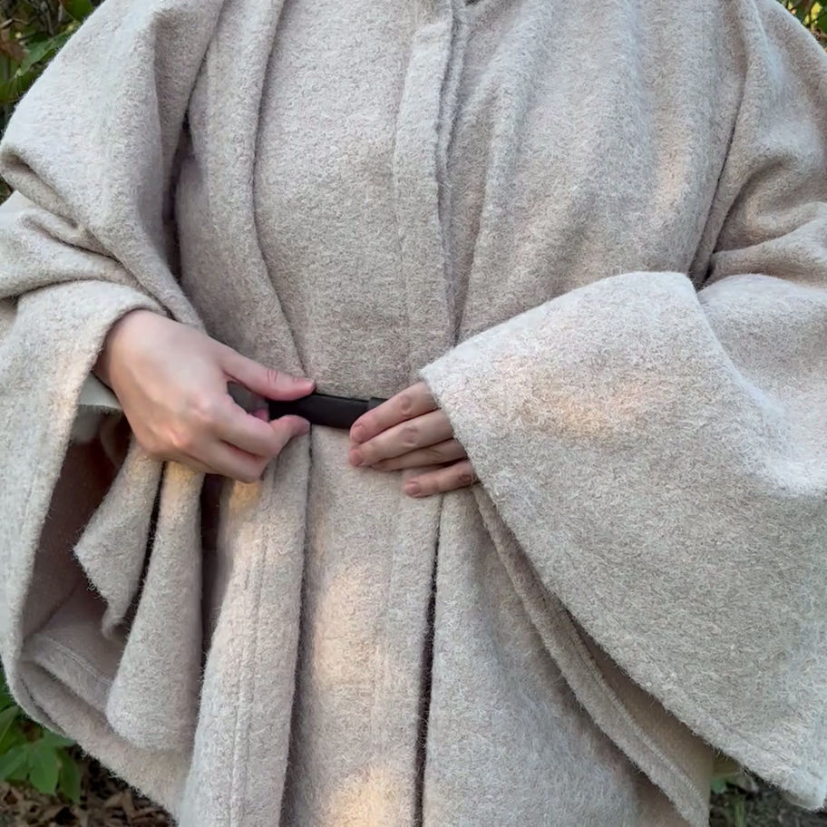 La Cape Cortado est un café au lait délicatement crémeux à consommer sans modération. Sa coupe ample glisse sur les épaules comme une caresse. Se portant avec ou sans ceinture, vous pouvez doser le style à votre guise. Une pièce forte et chaleureuse à associer avec chacune de nos gourmandises.